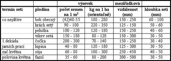 Tab. 6.4.3 - 1 : Setí jarních luskovin![]() |